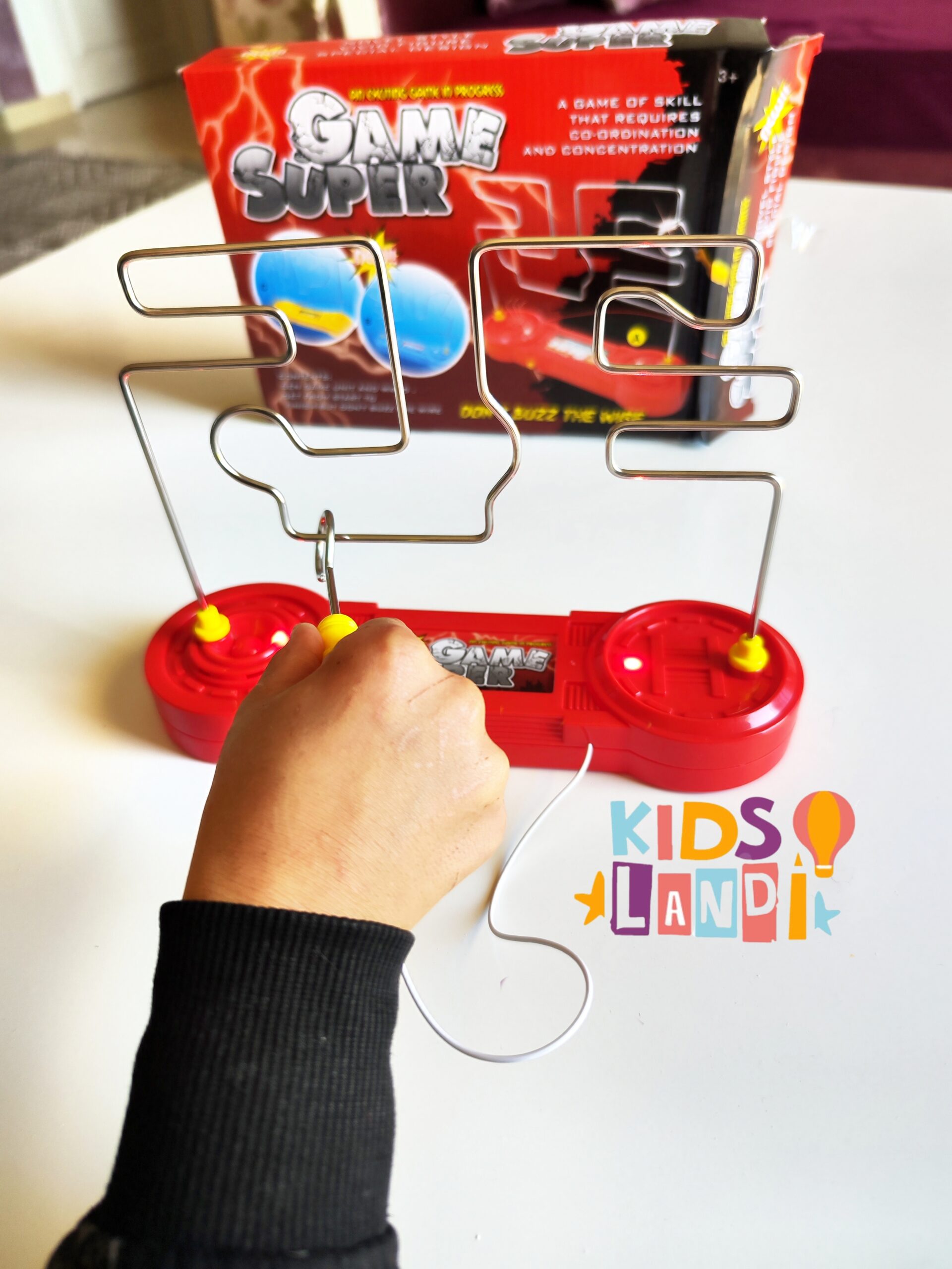 لعبة ممتعة وتحدّي حقيقي للأطفال! المطلوب إنّ الطفل يمرّر الحلقة على السلك المعدني من البداية للنهاية من غير ما يلمس السلك، وإذا لمس تصدر إشارة (ضوء/صوت) تزيد الحماس 😄.