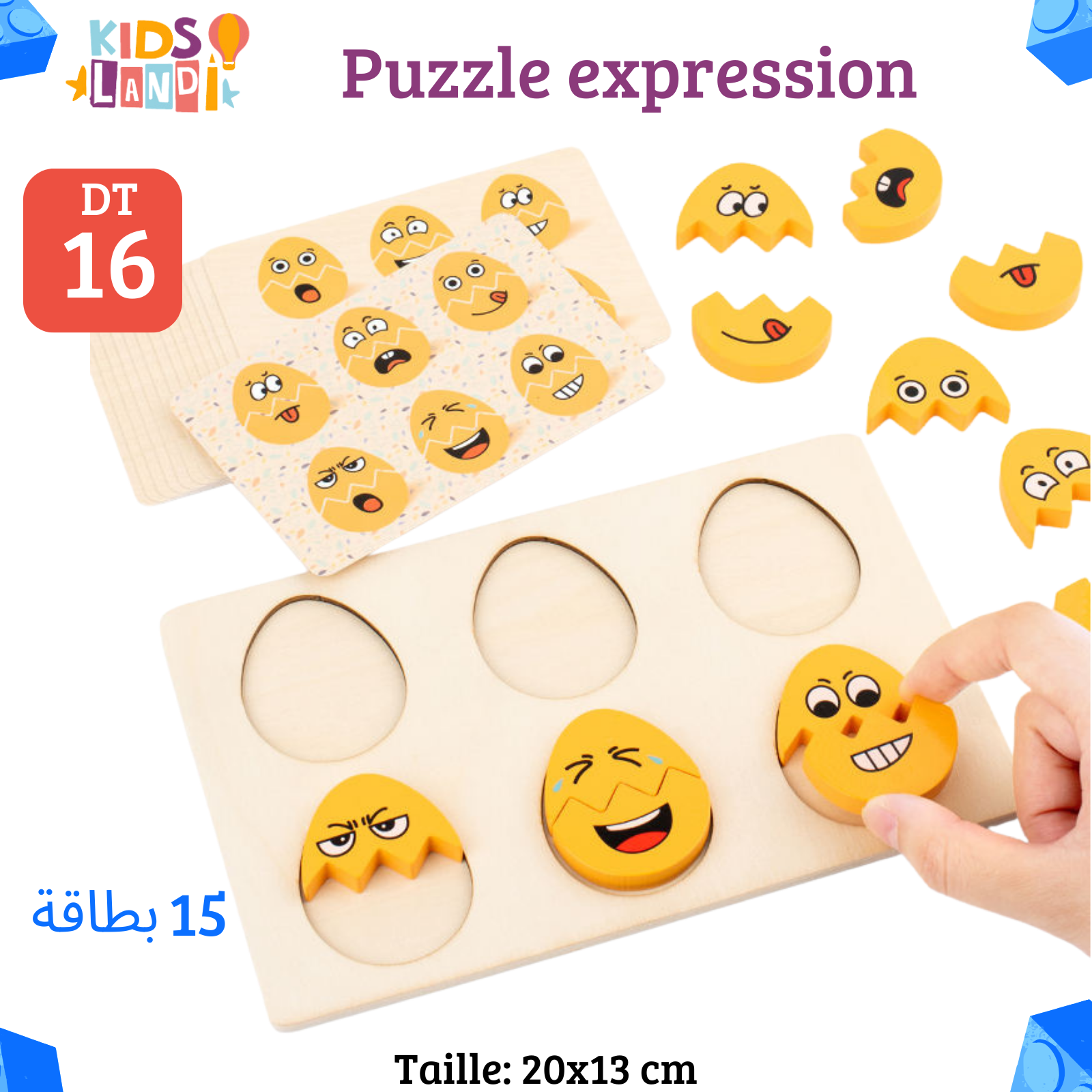 لعبة تعليمية خشبية ممتعة تساعد الطفل على التعرّف على المشاعر والتعابير الوجهية بطريقة لعب ذكية ومسلّية.